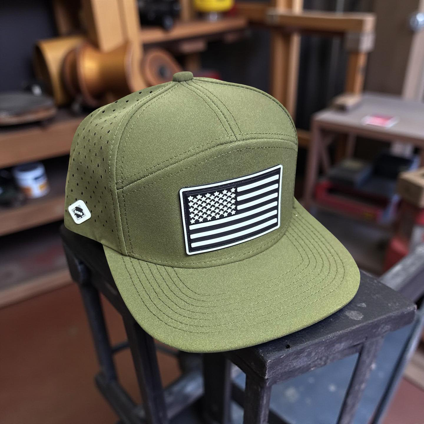 This high-quality black and white American flag hat is not only water resistant, but also features a performance backing for added durability. The American flag PVC patch adds a touch of patriotism to any setting. Show your support for the USA with this stylish and functional flag.